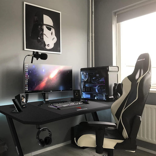 63 Inch Ergonomic Gaming Desk, Z Shaped Office PC Computer Desk with Large Mouse Pad, Gamer Tables Pro with USB Gaming Handle Rack, Stand Cup Holder and Headphone Hook, Black