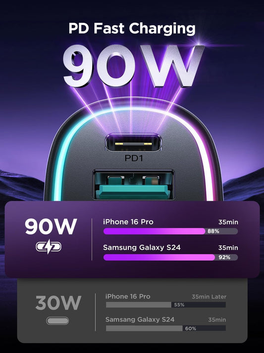 Car Charger USB C 90W 4-Port Car Phone Charger Compatible with Iphone 17/16/15/14/13/12 Pro Max plus [A Must for Family Travel] Super Fast Charging Cigarette Lighter Adapter Port